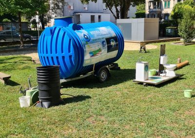 Pri izvedbi delavnic se uporablja mobilna vodna postaja, ki obsega vodnjak, osnovne elemente vodovodne infrastrukture (vodovodne cevi, umivalnik, …) in komunalne infrastrukture (WC školjka s kotličkom, komunalne cevi, …) ter različne preproste učne pripomočke, ki jih otroci poznajo iz vsakdanjega življenja (čaše za vodo, zalivalka, vedro, …) in jim omogočajo spoznavanje osnovnih značilnosti vode ter njene vsakodnevne rabe. Otroci tako z lastno aktivnostjo in uporabo različnih čutil na igriv in njim razumljiv način spoznavajo vodo, njeno uporabo in pomen.