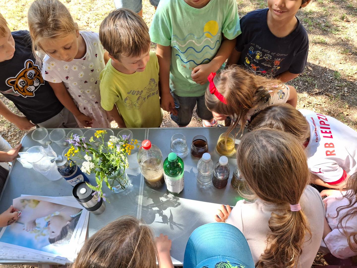 Vsaka voda ni pitna, zato otroci z različnimi čutili spoznavajo osnovne značilnosti vode, kot so barva, vonj in okus. To jim omogoča grobo oceniti ali lahko določeno vodo, ki jo najdejo v naravi, tudi pijejo. Koliko vode morajo v svoji starosti vsakodnevno popiti skupaj izmerimo z nalivanjem vode v kozarce (kozarec zjutraj, kozarec dopoldan, kozarec opoldne, …). Ob telesni aktivnosti in ob poletni vročini se znojijo, zato postanejo žejni in morajo popiti več vode. Prav tako morajo popiti več vode njihovi starši, njihova telesa so namreč večja in je zato njihova potreba po vodi večja.